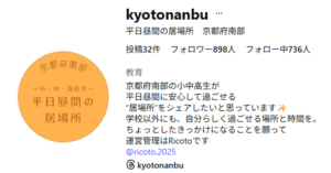 不登校になると、昼間につながれるところがなく困ってしまう事が多いです。当クリニック所属の心理士が運営するRicotoでは、京都府南部の小中高生が平日昼間に安心して過ごせる“居場所”をinstagramで紹介しています。学校以外にも、自分らしく過ごせる場所と時間をみつけてください。
